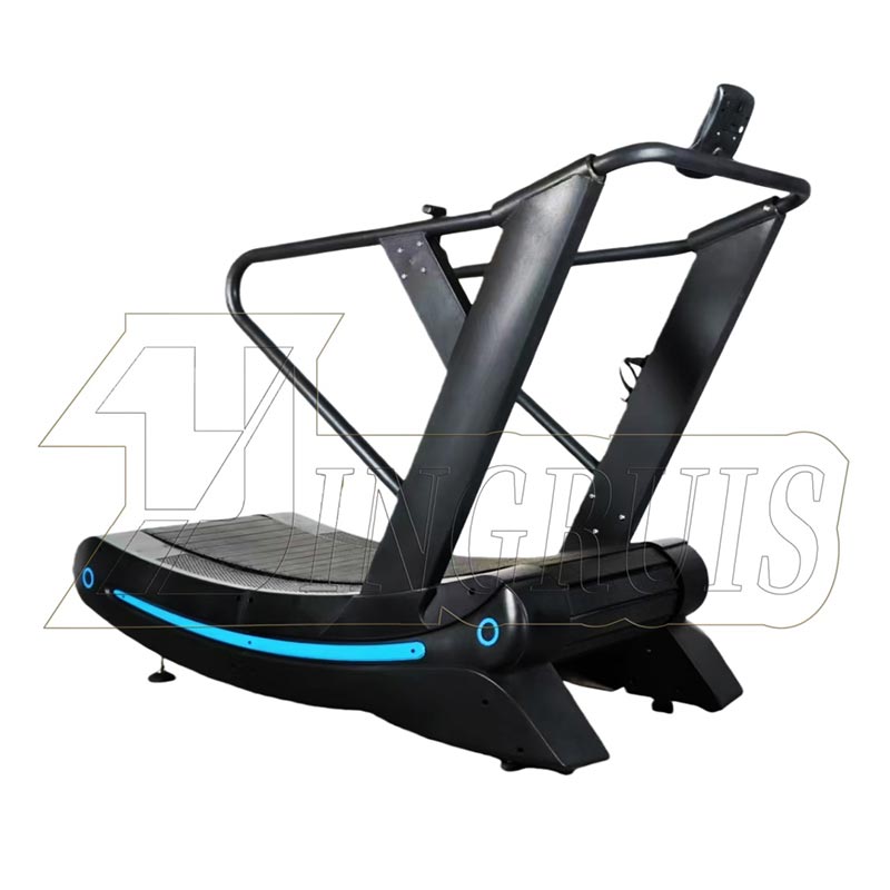 treadmill kerana ia bergantung sepenuhnya pada kuasa pengguna sendiri untuk memacu tali pinggang. Reka bentuk melengkung ini bukan sahaja